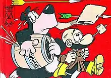 It debuted in 1959, published in the comics magazine Cucciolo, and in a short time it named an eponym comic book series, published in Italy by Edizioni Alpe.[1] The series, set in the American Old West, features a brown bear with the vice of drinking (Whisky) and an innocuous, easygoing trapper (Gogo).[1][2]