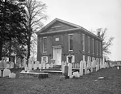 White Clay Creek Presbyterian Church is a historic Presbyterian church located near Newark, New Castle County, Delaware. The current structure was built in 1855, and is a two-story brick structure, nearly as tall (about 40 feet) as it is wide (45 feet). The building measures 63 feet deep. The exterior features brick pilasters and tall stained glass windows. A 1996 addition to the front of the building contains an elevator to the second floor sanctuary and is topped by a steeple.[2] It was preceded by a structure built in 1752. The church was organized as early as 1709 to serve Scotch-Irish Presbyterians at White Clay Creek.[3] The original White Clay Creek Presbyterian Church was built in 1721 about a mile north on the NW Corner of Dewalt Rd and Old Coach Rd.