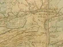 Two etymologies have been suggested for White Deer Hole Creek's unusual name. According to Donehoo, it is a translation of the Lenape (or Delaware) Woap-achtu-woalhen (meaning "white-deer digs a hole").[7] It is Opauchtooalin on the earliest map showing the creek (1755), while a 1759 map has both Opaghtanoten and its translation, "White Flint Creek". By 1770 (when the first settlers arrived) a map has "White Deer hole".[7]