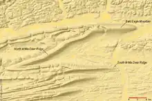 According to Meginness, the 17-mile (27 km) long and 8-mile (13 km) wide White Deer Hole Creek valley was just called "White Deer valley" by many in 1892, and this is still common.[8][13] Confusion about the names arises since White Deer Creek is the next creek south of White Deer Hole Creek (they are on opposite sides of South White Deer Ridge).[14] The Lenape name for White Deer Creek was Woap'-achtu-hanne (translated as "white-deer stream").[7]