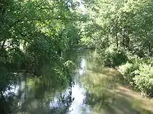 White Deer Hole Creek, very near its mouth and the site of its earliest settlements (looking west from U.S. Route 15 in Gregg Township)