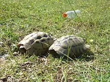 Of those with IUCN Red List assessments, seven of them are endangered, six are vulnerable, eight are near threatened, and ten are of least concern.[7] The globally vulnerable Vipera ursinii, one of three Viperidae in North Macedonia, has strict protection, while another 22 species have some level of protection.[1] Hermann's tortoise, found in forest and meadows, are expected to lost at least one third of their population over the next 75 years.[7]