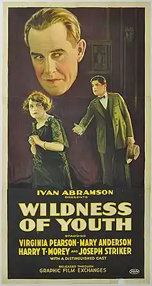 Wildness of Youth is a 1922 silent film directed by Ivan Abramson, starring Virginia Pearson, Harry T. Morey and Mary Anderson.