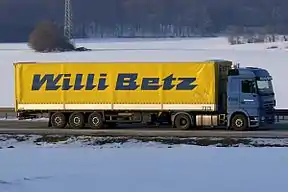 The Internationale Spedition Willi Betz GmbH& Co. KG is a German road haulage and logistics company which was founded in 1945 by 17-year-old Willi Betz (5 December 1927 – 12 December 2015)[1] in Undingen, Baden-Württemberg, Germany. its headquarters are located in Reutlingen, Baden-Württemberg, Germany. Over 4,000 people are employed in more than 40 locations in Europe and the Near and Middle East. With an own vehicle fleet of about 2,000 tractors and 3.000 trailers, Willi Betz GmbH &Co. KG is to one of the largest forwarding and transportation companies in Europe.