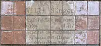 Willi Sänger resistance to National Socialism is memorialized in the Socialist Central Cemetery Friedrichsfelde in Berlin's Lichtenberg district.