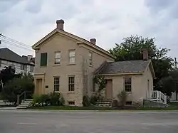 The house is a simple two-story Greek Revival design. The main door is on the east side, facing the Fox River. It is on the left side of the exterior, and is surrounded by windows to the right and above. The southern exposure has two windows on each floor, and the north side has one window on each floor. The west side also has two windows per floor. Two additional windows also originally adorned the main structure, but since have been filled in with brick. A small, one-story attachment was added at the time of original construction and also has an east-facing entrance.