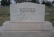 William and Frances Holden are interred in the family plot with his parents and first wife at the City of Lubbock Cemetery. Frances's grave is not specifically marked.[5] They were Methodist.