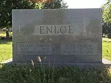 In August 1964 Enloe was hospitalized for a blood clot in his left eye.[35] He suffered a heart attack on November 2, 1972, while attending a North Carolina League of Municipalities convention in Greensboro. He died 20 days later at Rex Hospital in Raleigh.[2] He is buried next to his wife, Ruth Erskine Enloe, in Raleigh's Historic Oakwood Cemetery.[36] They had a son, William G. Enloe Jr., and a daughter, Ruth Enloe.[37]