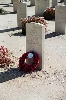 The grave of Lieutenant-General William Gott at the El Alamein cemetery. The wreath was laid by Squadron Leader Jimmy James and his son.