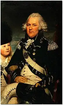 William Jarvis joined John Graves Simcoe’s Queen's Rangers in 1777. He was wounded at the Battle of Spencer's Ordinary in Virginia in 1781 and was commissioned cornet in late 1782. At the cessation of the American Revolutionary War he went on half-pay and attempted to return to Connecticut, however, hostility to the Loyalists remained strong, and after an encounter with angry Patriots, fled to England.[1] In 1791, Simcoe, who had been appointed as the first Lieutenant Governor of Upper Canada, recommended Jarvis to the Home Secretary, Henry Dundas, for the positions of Provincial Secretary and Clerk of the Executive Council of the newly established province. Jarvis was instead given the positions of Provincial Secretary and Registrar.[2]