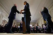 William Michael Daley (born on August 8, 1948) is an American lawyer, politician and former banker.[1] He served as White House Chief of Staff to President Barack Obama, from January 2011 to January 2012.[2] He also served as U.S. Secretary of Commerce, from 1997 to 2000, under President Bill Clinton.[3] He has also served on the executive committee of JPMorgan Chase & Co.[2] Daley was a candidate for Governor of Illinois in the 2014 gubernatorial election, until dropping out of the race on September 16, 2013. He ran in the 2019 Chicago mayoral election[4] but came in third in the first-round voting, and did not advance to the runoff. He served as the Vice Chairman of BNY Mellon from June through October 2019. Since November 13, 2019,[5][6] Daley has served as the Vice Chairman of Public Affairs for Wells Fargo.[5][7]