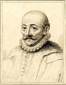 William Patten (b. circa 1510 – d. in or after 1598)[1] was born in London, the son of Richard Patten (d. 1536), clothworker, and Grace, the daughter of John Baskerville. His grandfather, Richard Patten of Boslow, Derbyshire, was a brother of William Waynflete (alias Patten), Bishop of Winchester.[2] William Patten's mother, Grace, is said to have predeceased her husband.[3] His sister, Alice (d.1557/8), was the wife of Armagil Waad, whom Patten referred to as a 'friend' in his Expedition into Scotland (see below).[4] Patten is said to have attended Gonville Hall,[5] Cambridge, and from 1528 was a minor chaplain and from 1533 a parish clerk of St Mary-at-Hill, Billingsgate, London.[6]