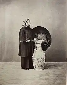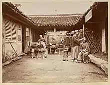 Saunders' success was built upon the production of photographic albums of Chinese landscapes and genre studies.[11] A selection of William Saunders' photographs was published in an early series of 50 prints published before 1871 as a Portfolio of Sketches of Chinese Life and Character.[12] While all other extant copies of this portfolio contain 50 images, a unique copy of the portfolio containing more than 70 photographs was acquired in Sweden by collector Stephan Loewentheil.[13] Saunders contributed regularly to publications such as the Far East and the Illustrated London News.[14] He also photographed local ports in China and Japan, including Yokohama where he settled for three months in August 1862 and assembled a portfolio of approximately 90 images during his time there.[15]