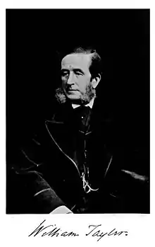 William Tayler (1808–1892) was a civil servant of the East India Company who lived in India from 1829 until 1867. He became commissioner of Patna in 1855 and in 1857 was involved in the suppression of the 1857 Sepoy Mutiny. His measures against the local people were regarded as excessively harsh by his superiors, and he was suspended and given an appointment of lower rank.[1]