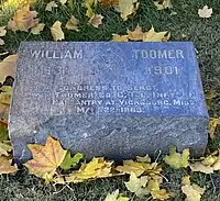 William Toomer (January 12, 1831 – December 27, 1901) was an American soldier who fought in the American Civil War. Tommer received his country's highest award for bravery during combat, the Medal of Honor.[1] Toomer's medal was won for his gallantry at the Battle of Vicksburg, Mississippi on May 22, 1863.[1] He was honored with the award on July 9, 1894.[2]