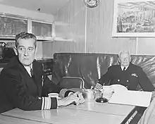 ![]() Rear Adm. O'Regan with Fleet Adm. Nimitz in 1957 | |