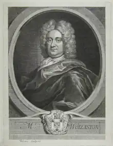Wollaston was born at Coton Clanford in Staffordshire, on 26 March 1659.[2] He was born to a family long-established in Staffordshire, and was distantly related to Sir John Wollaston, the Alderman and Lord Mayor of London.[3] However, his family was not wealthy. At the age of ten, he began school at a Latin school newly opened in Shenstone, Staffordshire, and continued in country free schools until he was admitted to Sidney Sussex College, Cambridge, at the age of 15, in June 1674.[4] From his writings it is clear that he was an excellent scholar, "extremely well versed" in languages and literature.[5]