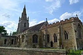 Evidence of Christian Anglo-Saxon activity in Willingham has been found, and there has probably been a church in the village since at least the 12th century. The present church of St Mary and All Saints was built on the foundations of the 12th-century building. Mainly constructed in the 14th century, it consists of a chancel with north vestry, nave, a south porch and a west tower with an unusual spire. It has notable 14th and 15th-century figure paintings, including a rare picture of a pregnant Virgin Mary.[2]