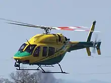The helicopter in use is a Bell 429 GlobalRanger, the first of its type to operate as an air ambulance in the UK.[8] It has a range of 400 miles (640 km) and a top speed of 150 knots (170 mph; 280 km/h), enabling it to reach anywhere in the county within a short time.[8]