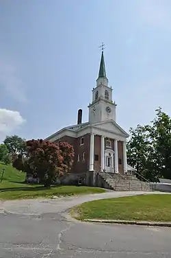 The Winchester Memorial Church, also known as the New Hampshire Conservatory of Music and the Arts, is a historic civic building in the center of Winchester, New Hampshire, United States. Built in 1912, it is a prominent local example of Colonial Revival architecture. It replaced a meeting house that was the location of the Winchester Profession, a key development in the history of Unitarian Universalism. The building was listed on the National Register of Historic Places in 1980.[1] It was acquired in 2006 by the Universalist Heritage Foundation as a memorial to the site's role in Universalist history.