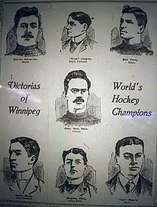 The Winnipeg Victorias were a former amateur senior-level men's amateur ice hockey team in Winnipeg, Manitoba, organized in 1889.[1] They played in the Manitoba Hockey Association (MHA) in the late 19th and early 20th centuries. The Victorias won the Stanley Cup in February 1896, 1901 and January 1902 while losing the Cup in December 1896, February 1899, February 1900, March 1902, and February 1903. After the Stanley Cup became the professional championship, the Victorias continued in senior-level amateur play, winning the Allan Cup in 1911 and 1912.
