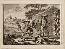 The murder of Wirich by the Spaniards, copper engraving of 1698 by Jan Luyken