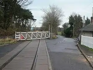 ![]() The site of the station seen looking across Witton-le-Wear level crossing in November 2009. The second station was on the left side of the track and the future site of the current (third) station is located on the right side of the track | |