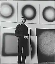 ![]() Wojciech Fangor posing in front of his paintings in 1964 | |