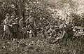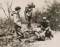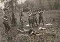 The women initially focused their efforts on creating apparel for gunners, scouts, and snipers that made them blend in with the landscape's trees or rocks.[5] Weekly field trips to Westchester County and parks such as Van Cortlandt Park and Kykuit, the Rockefeller family estate,[9] served as testing grounds for the women to try out their designs, trying to see if they could fool passerby or if their photographs showed they had succeeded in making people disappear from view.[4] They eventually moved from clothing to painting dazzle camouflage on ambulances, ships and tanks.[4][10] Units formed in various places throughout the United States, including Iowa, Minnesota, North and South Dakota,[11] and Philadelphia.[8]