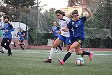 It wasn't until October–November 1998 that the AUB formed a proper women's football team, under the initiative of student Luma Shihab-Eldin.[2] In February 1999, the AUB played their first game against the women's team of the Notre Dame University–Louaize (NDU), which finished 4–4.[3] Two other schools in Lebanon also had a women's football team: the American Community School Beirut (ACS) and the International College, Beirut (IC).[4] In 2002, the first interscholastic girls' football tournament was played.[2]