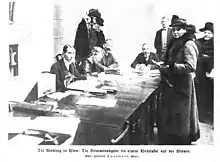 Still during the war, in a parliamentary assembly on 30 May 1917, Social Democrat Karl Seitz demanded to treat women as equal citizens. In October 1918, bourgeois and Social Democratic women's organisations wrote a common petition to the national assembly.[4]