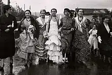 Nationalist supporting women behind Nationalist lines also sometimes were involved in auxiliary roles. This included working as nurses, provisioners and support personnel.[33][32] They were encouraged to do so by men as a means of supporting the traditional Spanish family structure.[32]