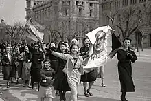 One riot occurred on 6 May 1937, when women looted vans full of oranges at the Barcelona port.[46] When this aspect was brought to attention, CNT offered sexist excuses as to why working-class women were unable to buy bread. The result was that ordinary working-class women in the city often turned on anarchist women, and blaming them despite the anarchist women not being involved in CNT leadership.[21] Mujeres Libres, CNT's women's arm, addressed this problem by taking action into their own hands, and staging assaults on markets to provide food for other women. Food riots would become a common feature in Barcelona during the Civil War.[21]