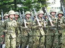 The first female in the JSDF to achieve star ranks (admiral and general) is Hikaru Saeki, who became JMSDF Rear Admiral on 27 March 2001.[38] She was followed by Michiko Kajita and Keiko Kashihara, who were promoted to JASDF Major Generals in 2007[39] and 2011 respectively.[40]