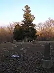 Organized in 1866,[12] the Woodburn Cemetery on the outskirts of the town includes the small burial ground originally used by the Rider family (now in the northwest corner of the cemetery). Half of the land for the cemetery was purchased by the village; the other half was donated by Mr. Huggins. The oldest grave dates to 1844. Many soldiers are buried here.[13] One notable grave is that of Jonathan Lucas Wood, nephew of the Wood brothers who founded the town.[3]