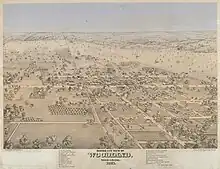 In 1870 the population of Woodland was estimated to be 1,600 people, 647 of whom were registered voters.[11][14] Signatures were collected to petition for the incorporation of the town.[14] The City of Woodland was incorporated in 1871 and its residents soon had regular train and telegraph operations, telephone services, gas, water, electricity, street lights, and graveled streets.[12] Byron Jackson, inventor of the centrifugal pump, opened a machine shop in Woodland in 1872. The business moved to San Francisco in 1879, supplying highly efficient pumps for ground water irrigation which transformed agriculture and industry in California.[15]