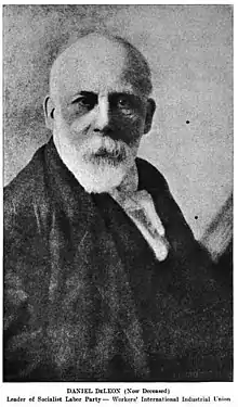 The 4th Convention of the Industrial Workers of the World (IWW) was convened in Chicago on September 21, 1908, attended by 26 delegates.[1] Despite the small size of the gathering, factional disagreement was already deep within the organization and two delegates were denied their seats at the convention – including one Daniel DeLeon of New York City.[1] DeLeon, powerful editor of the newspaper of the Socialist Labor Party of America (SLP), The People, had already emerged as a sharp critic of IWW leader Vincent St. John and the orientation of the union, which was based upon direct action and tilted towards largely unskilled labor in the Western United States.