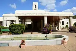 The original crematorium building, incorporating two chapels and a dual-furnace crematory, was completed in 1934 in the Inter-war Art Deco style by architect Louis Leighton Robertson of Louis S. Robertson & Son, architects, and built by Norman R. Smith, builder of Bexley.[5][6][7] Robertson also designed crematoriums in a similar style at Matraville (1938), Kembla Grange (1955), and Beresfield (1936).[8][9][10][11][12] The crematorium was officially opened on 21 April 1934 by the Colonial Secretary, Frank Chaffey.[13]