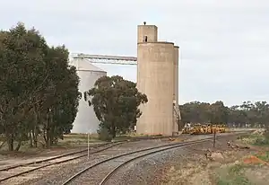 Wunghnu is a closed railway station on the Goulburn Valley line, in the township of Wunghnu, Victoria, Australia. The station opened at the same time as the railway from Shepparton to Numurkah on 1 September 1881, and was closed to freight in March 2003.[1] The loop siding to the grain silos remains, and has been used to stable track machines such as ballast tampers.