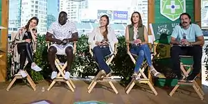 Cast at "Camp Conival" during 2016 San Diego Comic-Con. From left: Melanie Scrofano, Shamier Anderson, Dominique Provost-Chalkley, Katherine Barrell and Tim Rozon.