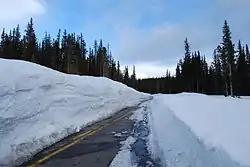 Wyoming Highway 130 (WYO 130) is a 98.52-mile-long (158.55 km) state highway in the U.S. State of Wyoming. It is known locally as the Snowy Range Road. It makes its way west from Laramie across the plains, and rises over the Medicine Bow Mountains. The road then turns north through the town of Saratoga, and ends at Interstate 80 (I-80). The stretch of road over the mountains is a National Forest Byway. WYO 130 over Snowy Range Pass is closed during winter (November–May).[1]
