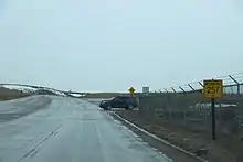 Land condemnation of the highway's right-of-way and additional land for future expansion was completed in January 2012, following additional negotiations with property owners and a hearing in the Natrona County District Court.[24][25] The $19.2 million contract (equivalent to $24.3 million in 2022 dollars)[13] to construct the first phase, including the North Platte River bridge, was awarded in March 2013 and grading was completed the following year.[26][27] The second phase to pave the new highway began in October 2014 with the awarding of a $16.6 million contract (equivalent to $20.3 million in 2022 dollars)[13] to a Utah firm.[28][29]