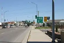 Highway 92 begins in downtown Torrington at an intersection with U.S. Routes 26 and 85.[3] Highway 92 proceeds southward, concurrent with US 85 Business. In one half-mile Highway 92 intersects mainline US 85 again, where US 85 Business ends and the concurrency with the mainline begins. The routes cross the North Platte River and intersects the eastern terminus of Highway 156 in an area known as South Torrington.[2] Leaving Torrington, the highway intersects the northern end of Highway 154 before splitting off from US 85. US 85 then continues south toward Cheyenne while Highway 92 turns east. Highway 92 travels southeasterly to the community of Huntley, a Census-designated place (CDP), where it intersects the eastern terminus of Highway 161 as the road turns east.[2] Highway 92 zigzags southeast of Huntley where it intersects the western (northern) terminus of Highway 158 as it heads for the Nebraska state line.[2] At the Nebraska state border near Lyman, Nebraska the roadway continues east as Nebraska Highway 92.