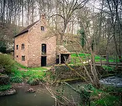 One of nine possible mills that historically worked on Dowles Brook, Knowles Mill was built in the eighteenth-century, and was later modified in the nineteenth-century.[4] The surviving building is two storeys high and the site also preserves an overshot mill wheel made of iron and a great spur wheel, alongside other remnant machinery.[5] The first record of a mill on the site dates to 1757 when it was listed as for sale in a local newspaper. [4]The mill and its surroundings are owned by the National Trust.[6]