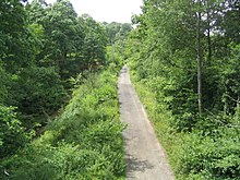A branch of the Severn Valley Railway, known as the "Tenbury Line", once ran through the Wyre Forest. It branched from the main line north of Bewdley station and crossed the River Severn at Dowles Bridge, the piers of which still remain. The trackbed of the railway is now a walking route through the forest.