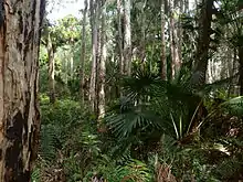The Wyrrabalong National Park is a coastal national park that is located on the Central Coast of New South Wales, in eastern Australia. The 620-hectare (1,500-acre) national park consists of two sections; the northern section consists of approximately 480 hectares (1,200 acres) and covers a substantial area of the peninsula between The Entrance and Norah Head as well as Terilbah and Pelican Islands within Tuggerah Lake. The southern section consists of about 120 hectares (300 acres) of the coast, from Shelly Beach south to Forresters Beach.[2] The park is also noted for containing the last significant coastal (littoral) rainforest on the Central Coast.[3]