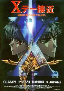 X, also known as X/1999 and X: The Movie, is a 1996 Japanese animated film directed by Rintaro and animated by Madhouse. Rintaro wrote it alongside Clamp head writer Nanase Ohkawa. It is based on Clamp's manga series of the same name. It premiered on August 3, 1996, in Japan and had a limited screening in North America during 2000. The film focuses on the roles Kamui Shiro, Kotori Monou, and Fuma Monou play in the Apocalypse. After his mother's death, the young Kamui returns to Tokyo to participate in a Holy War between two groups that will either protect mankind or protect nature at the cost of mankind.