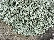 Grows to around 6–12 cm in diameter with irregular lobate lobes. The upper surface of the lichen has rounded lobed tips with yellow-green or blueish green areas on the surface.[3]