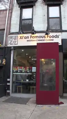 Xi'an Famous Foods (Chinese: 西安名吃) is a chain of fast casual restaurants based in New York City that serves Shaanxi cuisine. Xi’an Famous Foods, a family-run business with no outside investors, was founded in 2005. It has been featured in television shows such as the Cooking Channel’s Food(ography), Kelly Choi’s Eat Out NY, and Anthony Bourdain’s No Reservations.[1] It has also appeared in The New York Times, New York Magazine, the Wall Street Journal, Forbes, and others. Xi’an Famous Foods has stores in the New York boroughs of Queens, Brooklyn, and Manhattan.