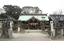 The shrine was burned down in July 1945 during World War II, and was reconstructed in the late 1950s. It is located approximately one kilometer southeast of Akogi Station on the Kisei Main Line.